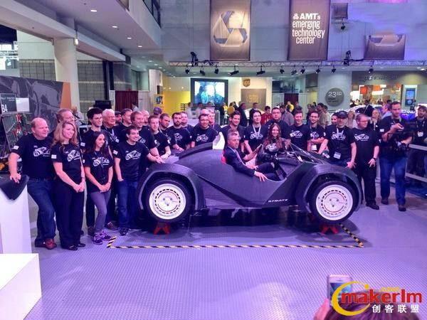 2014年9月,在芝加哥國際制造技術展(IMTS)上,Local Motors現場打印了一臺完整汽車——這是世界上第一臺3D打印汽車,從打印到裝好僅用44小時,震驚了全世界。該公司當時宣布將在5年內在全球建造50座微工廠,開創一個蓬勃發展的3D打印汽車制造業。